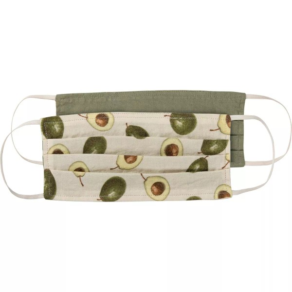 Reversible Two Ply Pleated Cotton Face Mask ~ Avocado Pattern