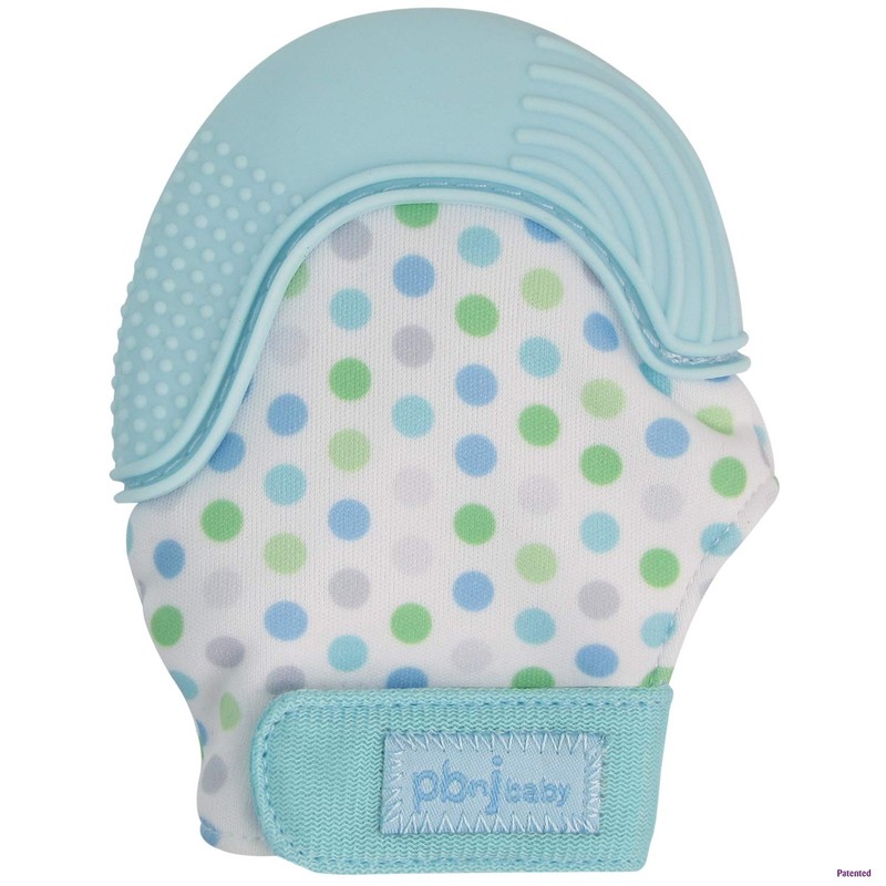 PBnJ baby Silicone Infant Teething Mitten Teether Glove Mitt Toy (Blue Dot)