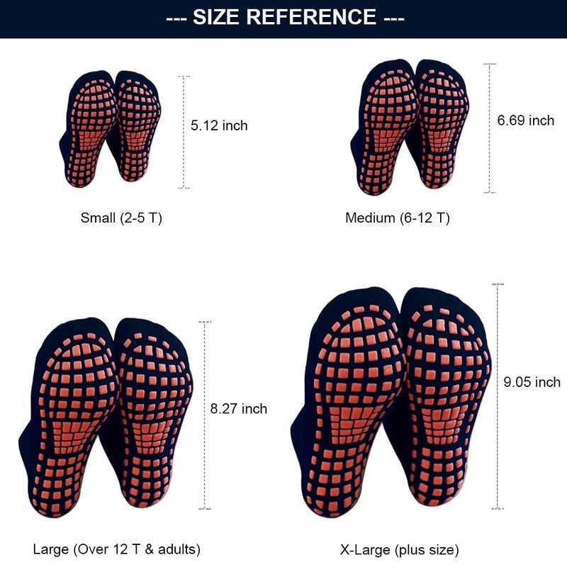 - Sock Bottom Size: Small (length 5.12 inch, 2 to 5 year old) ; Medium (length 6.69 inch, 6 to 12 year old); Large (length 8.27 inch, teens and adults); X-Large (length 9.05 inch, adults)