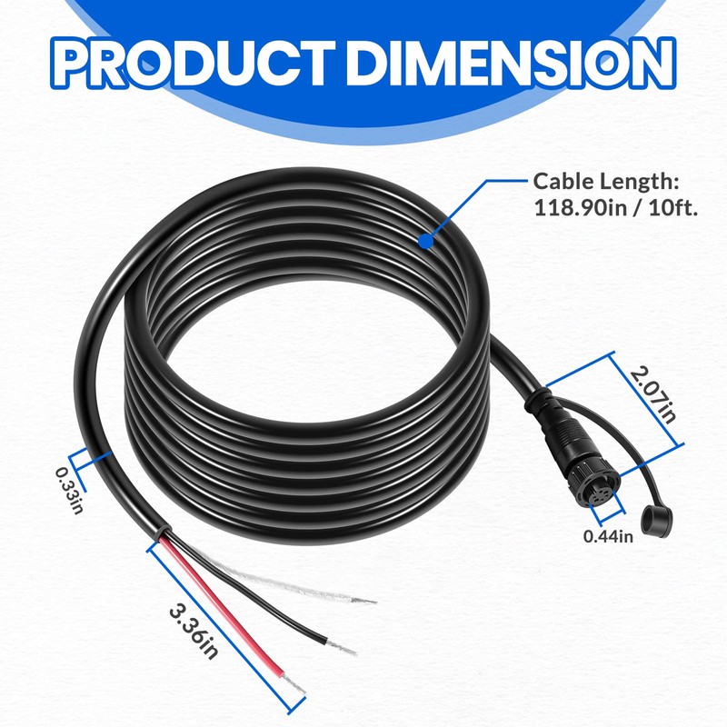 - 【Consistent & Safe Power Supply】Built with premium copper conductors and marine-grade insulation, ensuring efficient current transfer and safe operation. Can be used as a spare or replacement cable; power your unit on or off the water for waypoint management and updates without being restricted to the boat