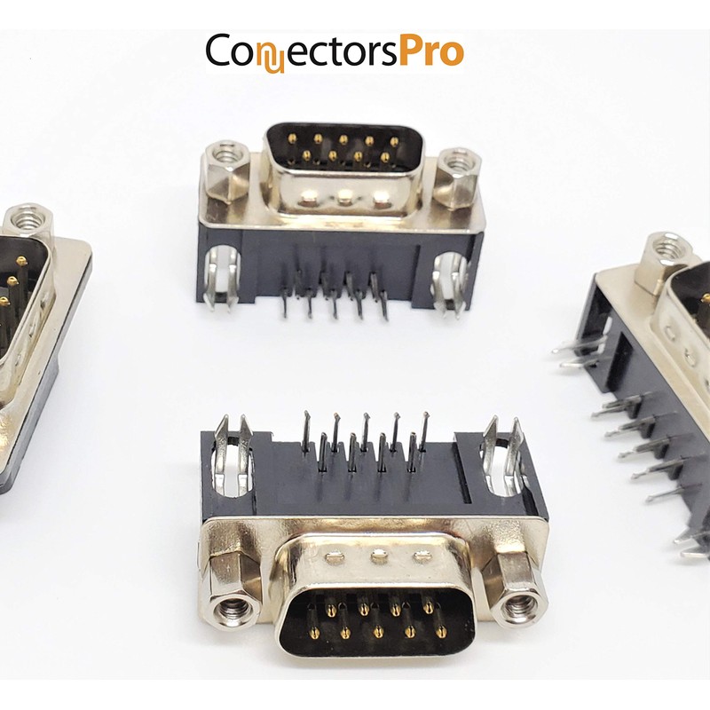 - PCB Mount Right Angle Connector DB-9 male, Solder Type