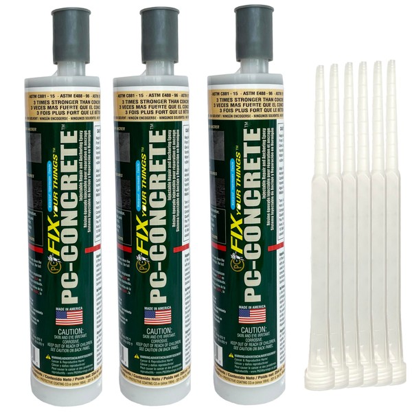 PC-Concrete Two-Part Epoxy Adhesive Paste for Anchoring and Crack Repair, 8.6 oz Cartridge, Gray (3-Pack)