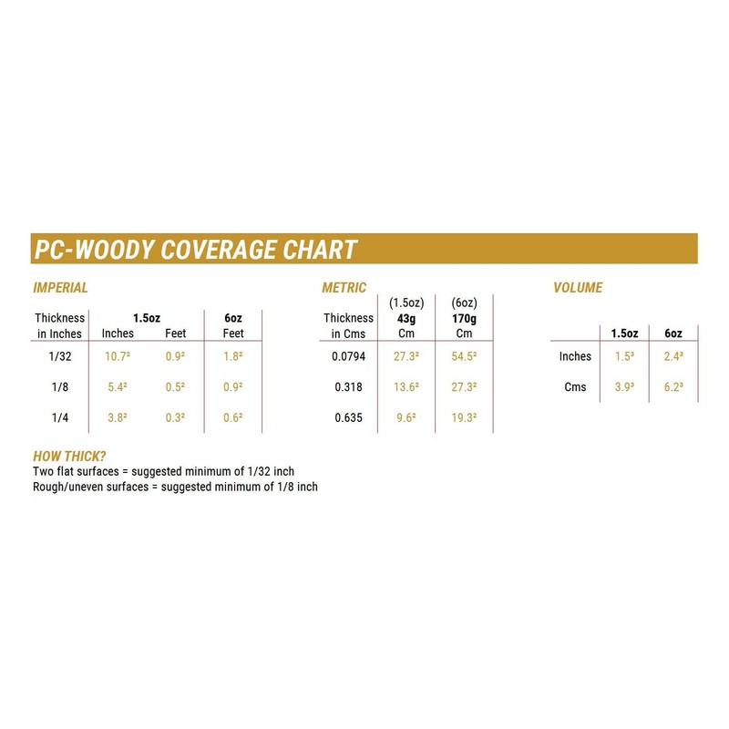 - Not recommended to mix PC-Woody in teaspoon size increments or smaller simply because of the likelihood of an 'off-ratio' mix