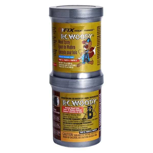 PC Products PC-Woody Wood Repair Epoxy Paste, Two-Part 12 oz in Two Cans, Tan