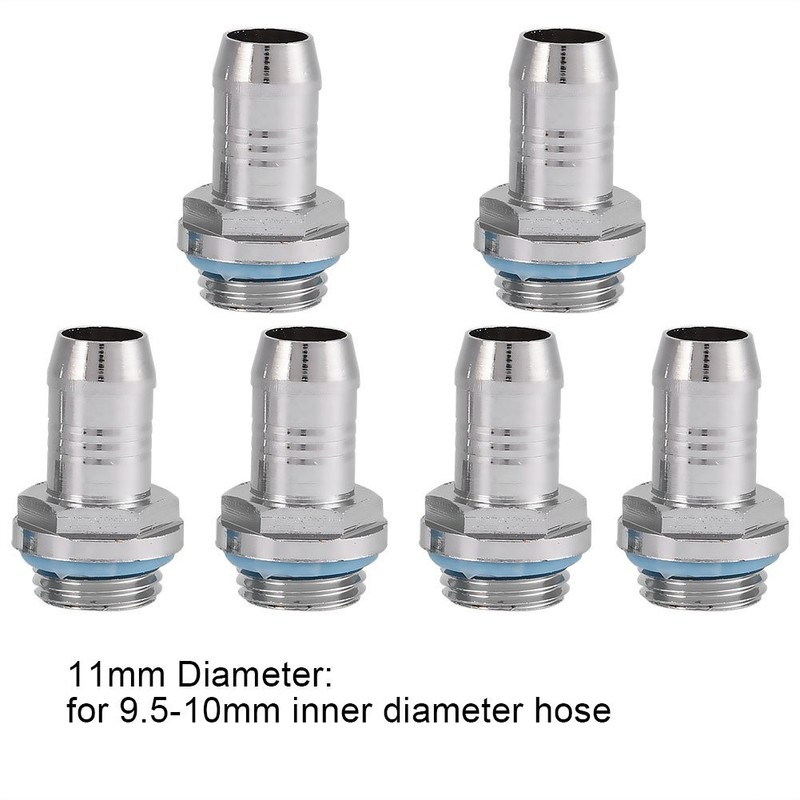 PC Water Cooling, 6 PCS Two-Touch Fitting G1/4 Thread Barb Connector, for Connection Between Water Blocks, Radiators, Water Pumps, Reservoir and Other Water Cooling System Kit.(11mm)