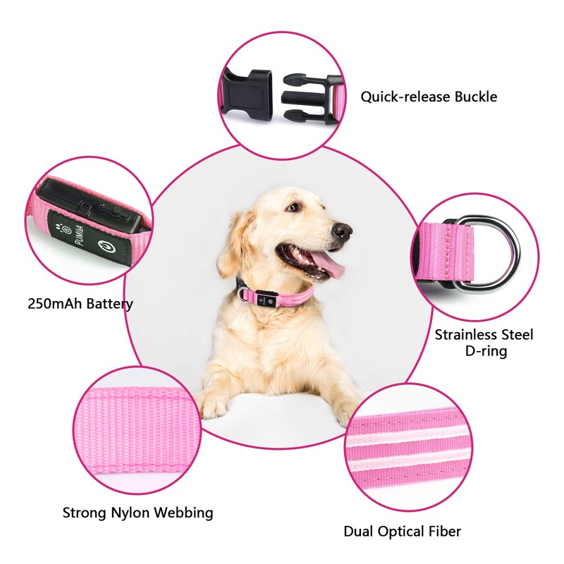 PcEoTllar LED Dog Collar Flashing Light Up Dog Collar 100% Waterproof Rechargeable Safety Adjustable Pets Collar Increased Visibility Super Bright for Small Medium Large Dog - Pink - L