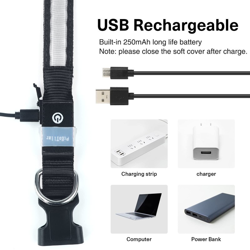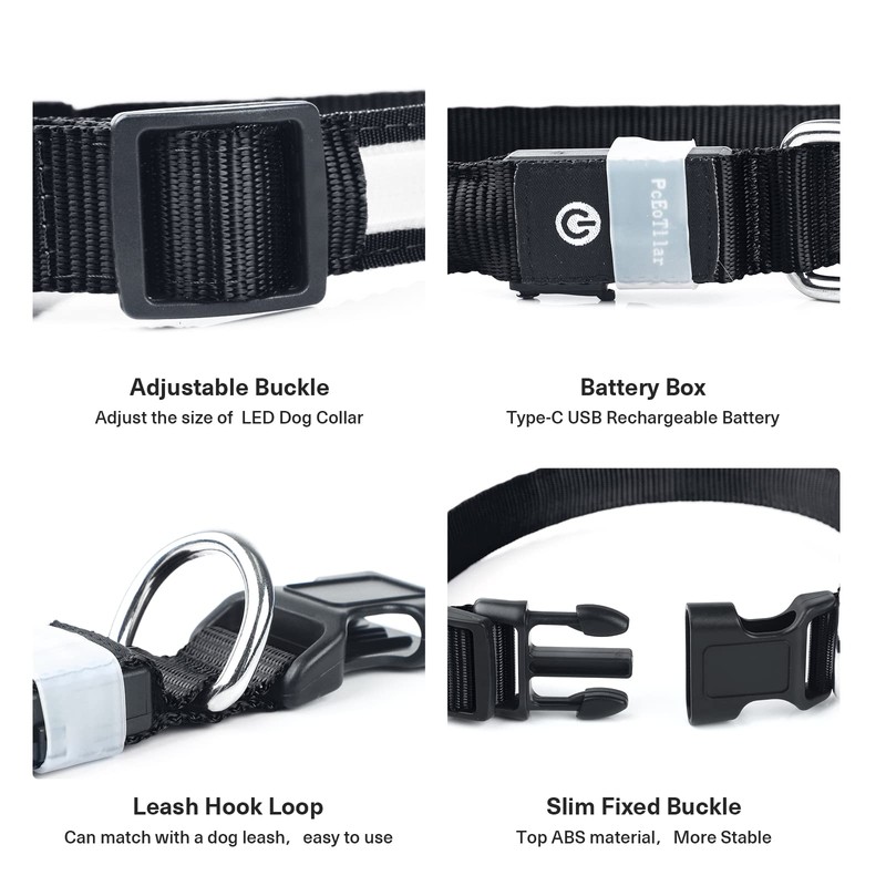 • ★Rechargeable Light Up Dog Collars: After upgraded, this lighted dog collar is adopted with standard Type-C charging port, which is more convenient to get it charged with no worry about losing the included charger. With built-in 250 mAh battery, the collar can lasts for 10H after a full charge in 2 hours.