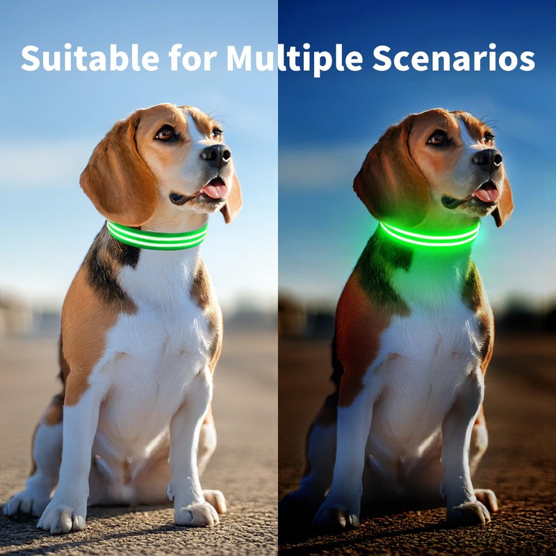 - Multiple Colors and Sizes: PcEoTllar light up dog collar is designed for every breed and personality. Available in 4 charming colors and 4 sizes (Small, Medium, Large and X - Large). Please refer to the size chart in the picture to choose the suitable lighted led dog collar.