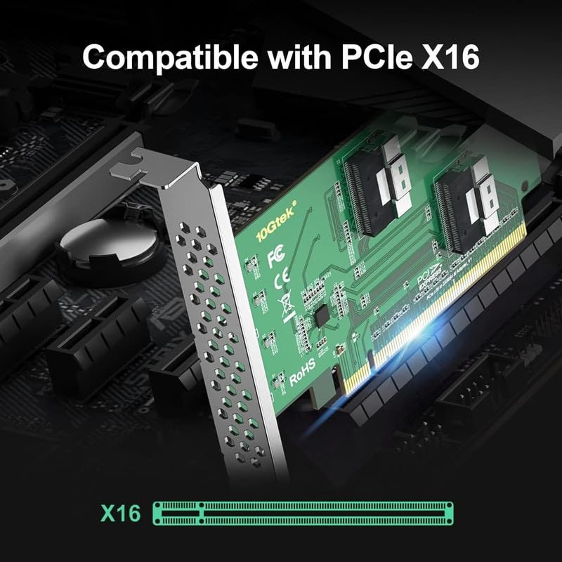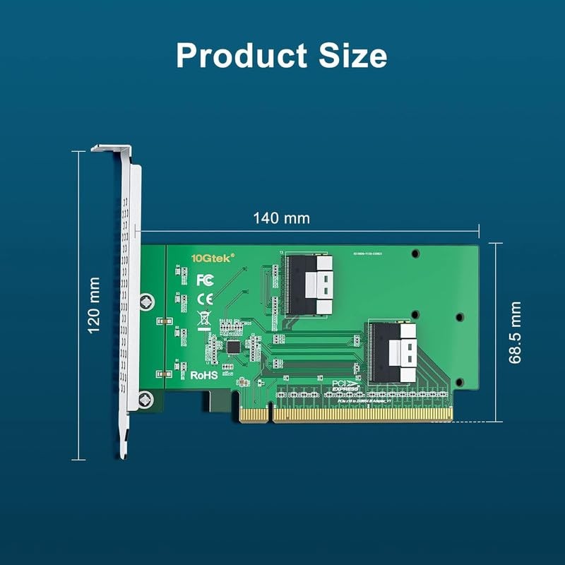PCIe 4.0 x16 to Dual SFF-8654 Adapter Card for U.2 NVMe SSD, SlimSAS 8i Inter...