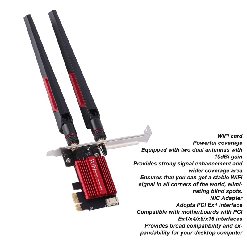 - POWERFUL COVERAGE: Equipped with two dual antennas with 10dBi gain, the WiFi card provides strong signal enhancement and wider coverage, ensuring that you get stable wireless network signals in all corners and eliminating network blind spots.