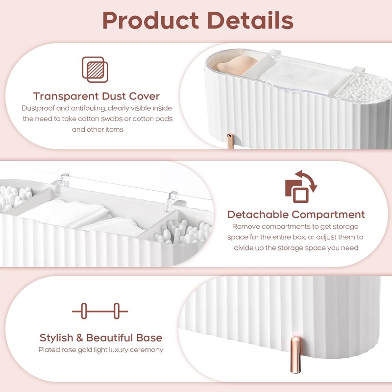 - 【3 Removable Compartments】: The cotton pad holder dispenser has three detachable compartments that you can remove them at will to choose the size of the storage space you need to separate and keep your items sorted and neat.