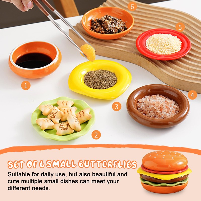 - Creative Stackable Design: This hamburger plate set burger-inspired ceramic plate set features 6 stackable layers, stackable burger plate set doubling as a fun decorative piece and practical tableware for snacks, dips, sushi, or salads—adding charm to any gathering