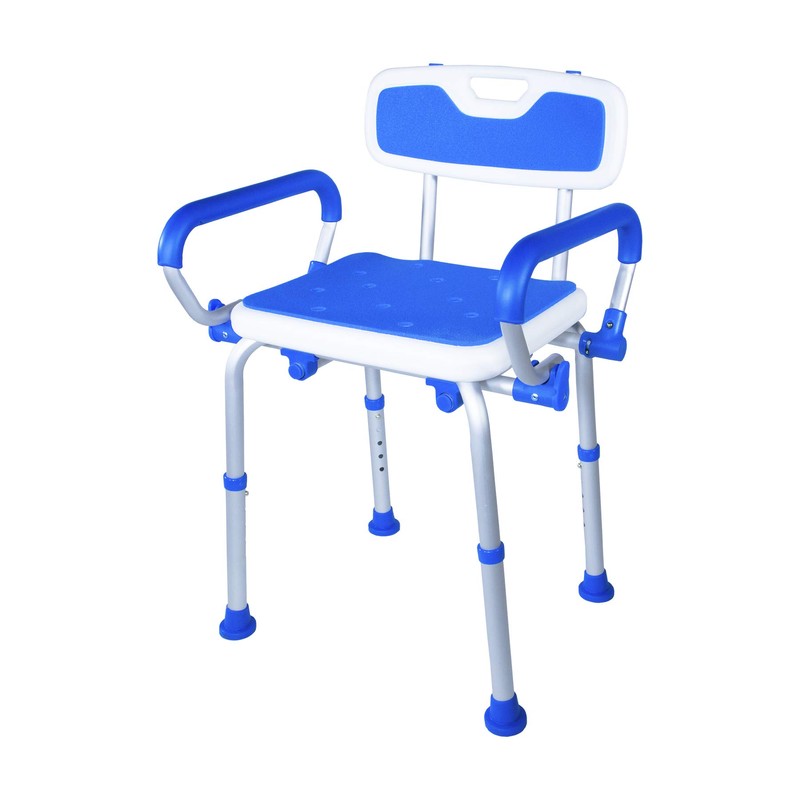 PCP Shower Safety Chair, Bath Bench with Backrest, Swing Arms, Adjustable Height, Medical Senior Support, Chair Style, Foam Padded