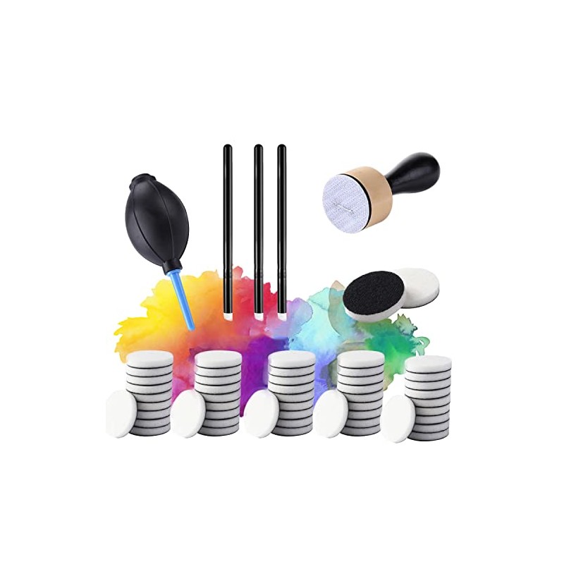 - [PACKAGE CONTENT] -- There are a total of 57 pieces of ink supplies in the package for you,3peices of detailed blending brushes,1 piece of TPE air blower, 1 piece of ink blending tool, 52 pieces of felts pieces of replacement foams, a nice combination for you to create many delicate art works