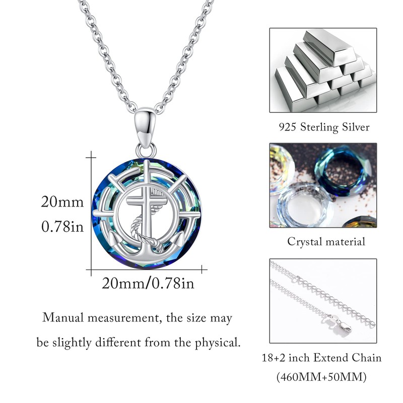 - 925 Sterling Silver: Rudder necklace made of real 925 sterling silver, set with AAAAA crystal circle. The material we used has low sensitivity, lead-free and nickle-free, won't turn your skin green or itchy them