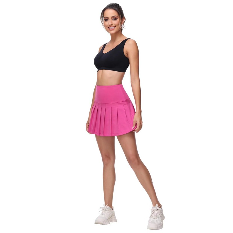 Pdbokew Women's Tennis Skirt 3 Pockets Pleated Tennis Skort Mini Skirt Hot Pink XL