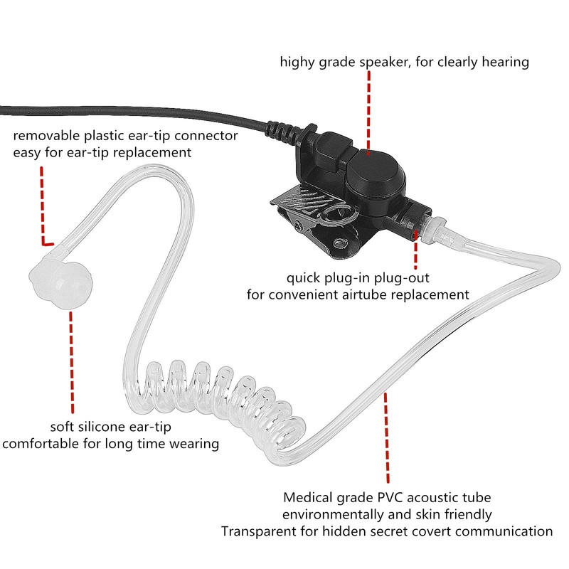 - Highly sensitive condenser microphone built-in-line ptt and clip produce high quality sound transmission even in loud environments