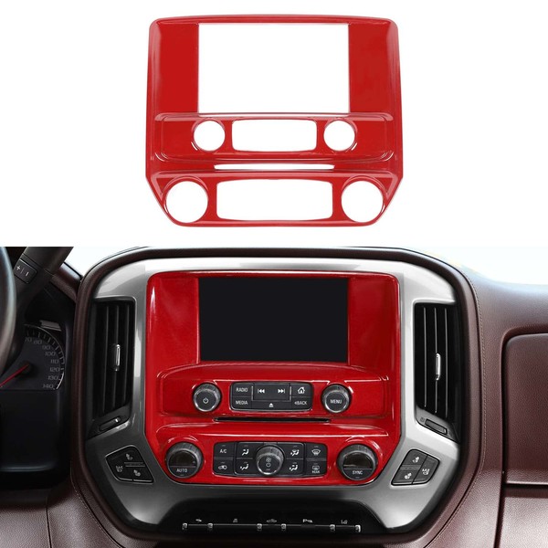 PDKLIN for Silverado Center Dash AC Control Panel Trim Cover for Chevy Silverado GMC Sierra 2014-2018 Red Interior Accessories