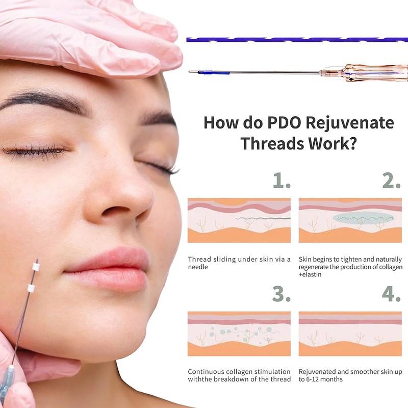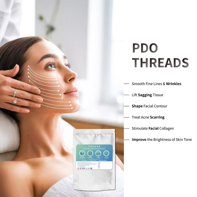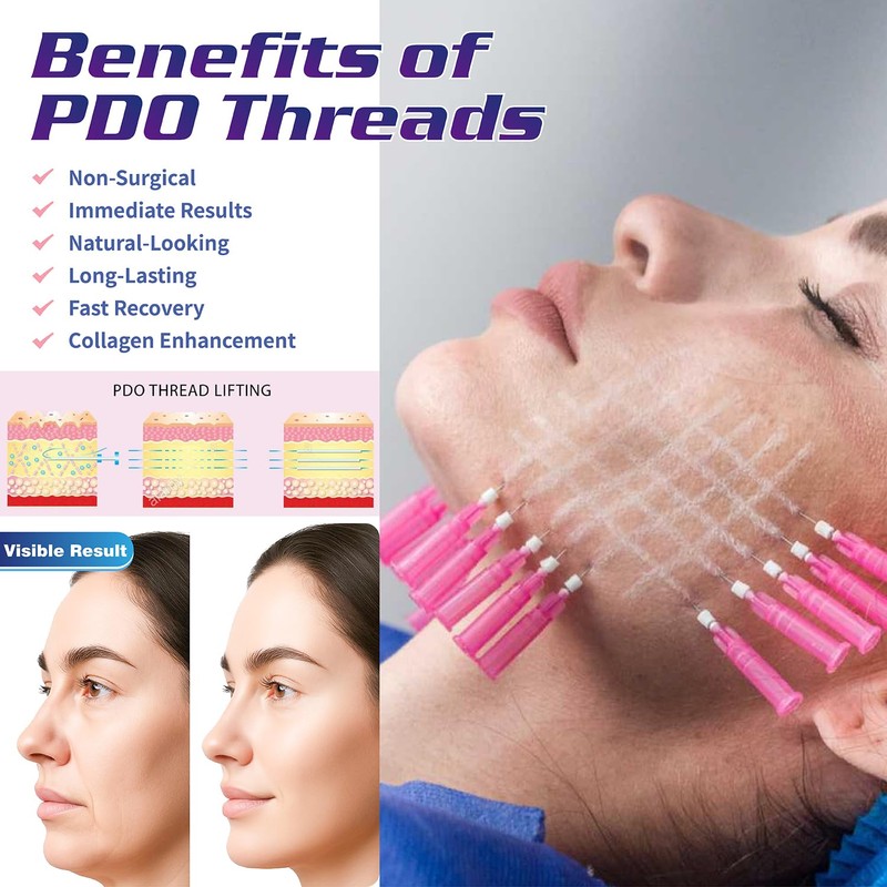 - Pdo cog threads for face lift, As we age, our skin becomes rough, Wrinkled, And dull. PDO threads are made from a biodegradable material, stimulate the production of collagen in the skin, which results in long-term skin tightening and rejuvenation. Besides, less invasive than traditional facelift surgery, as the threads are inserted into the skin using small needles.