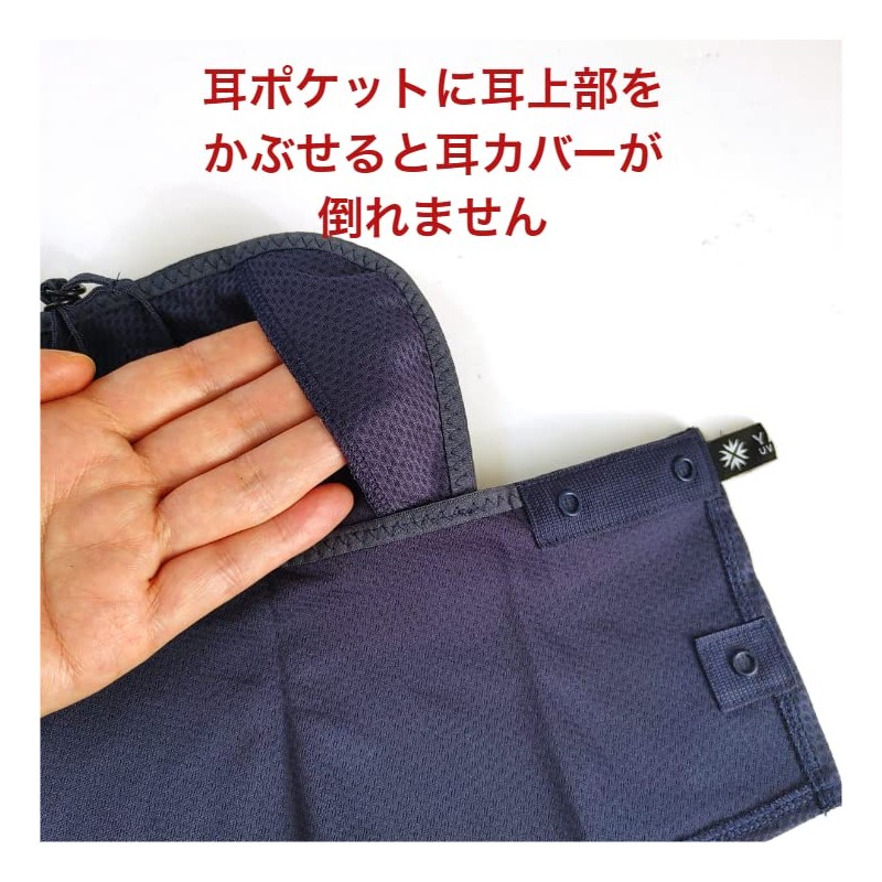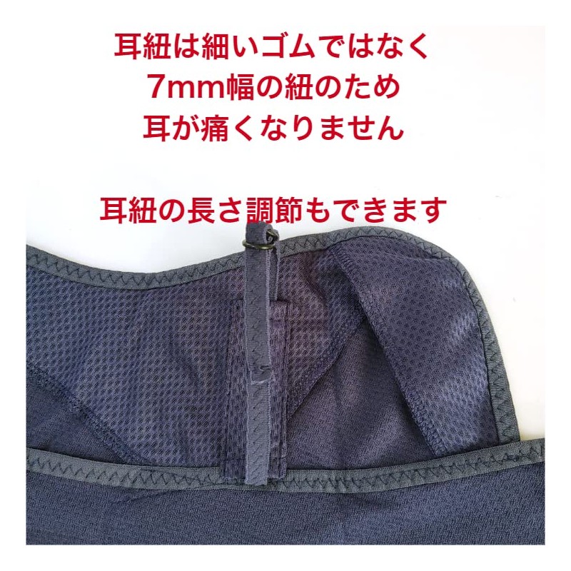 - 【耳カバー付】、背面は【スナップボタン留め】、鼻筋に【形態安定テープ付き】。
