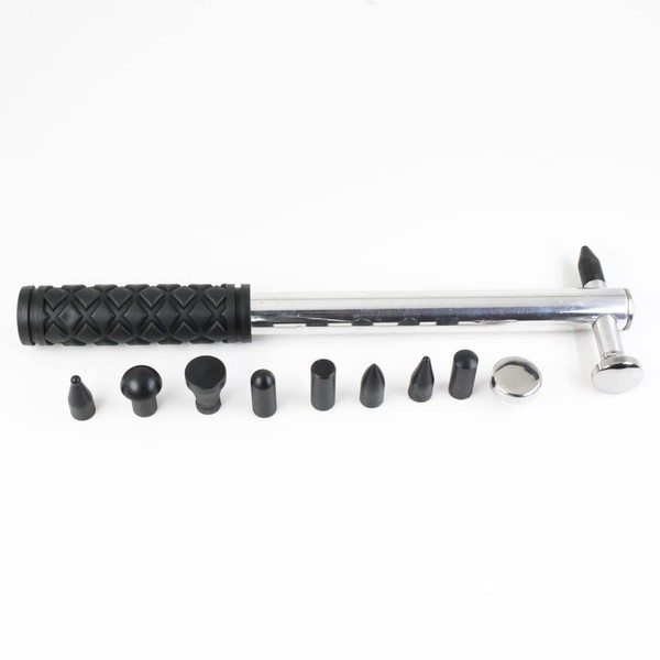 PDR Tools,Length 310mm, Head 9mm, 9 Pieces Plastic and 1 Pcs Steel Variable Head Hammer, Rubber Covered Handle, Kits