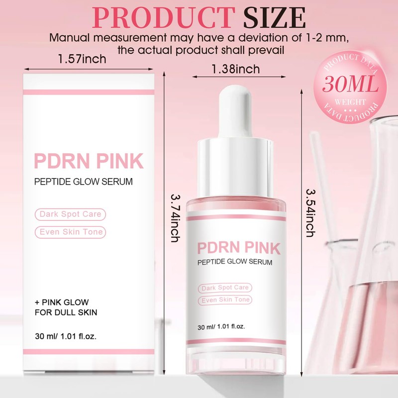 PDRN Serum, PDRN Pink Peptide Glow Serum, Anti Wrinkle Serums, Face Serum Contains Collagen and Niacinamides, Evens Skin Tone, Improve Skin Elasticity, 30 ml