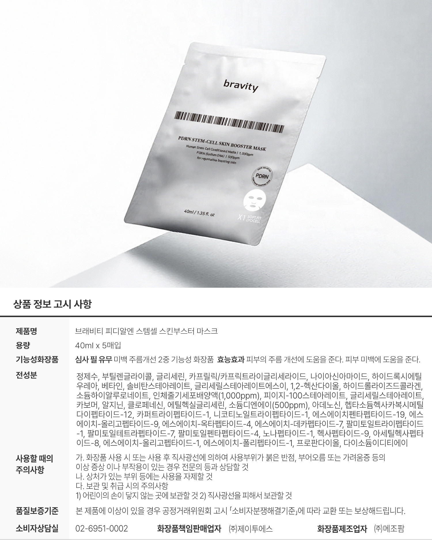 PDRN 스템셀 스킨부스터 마스크(5매)