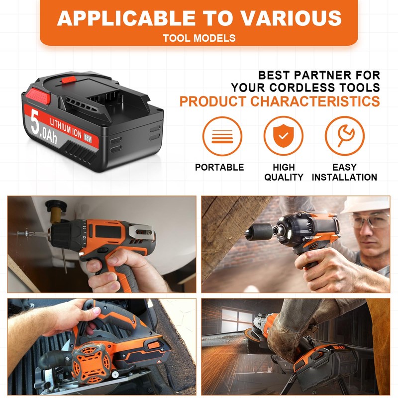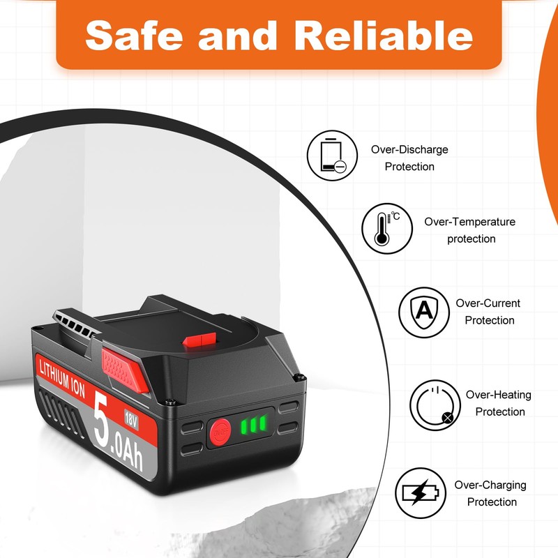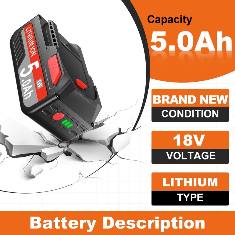 - PREMIUM MATERIAL: High Quality 5.0Ah Lithiuim battery cells, long lasting/ more run-time and powerful in working, With LED battery charge level indicator, allows user to monitor battery using.