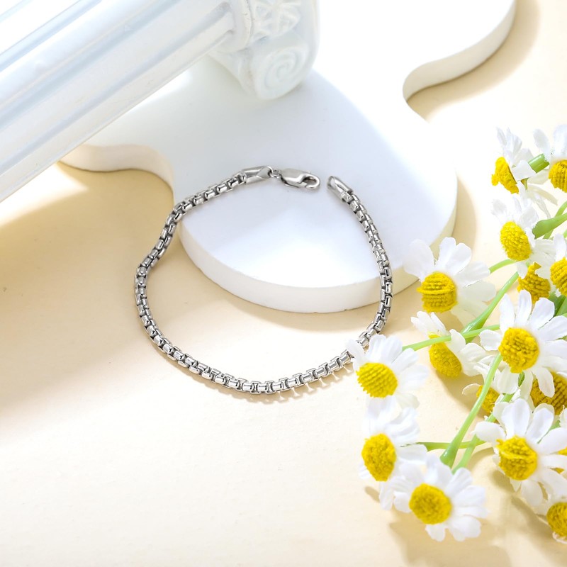 - Design: Square rolo link chain bracelet is simple but elegantly designed, and the chain will accentuate your appearance easily, making you look more elegant and classy.
