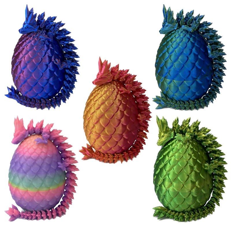 - GIFT OR ORNAMENT: Each uniquely colored 3D printed dragon egg contains a corresponding hinged dragon. This uniquely shaped set of dragon eggs can be displayed in your home or on your desk to show off your taste and add personality to your space. They also make the perfect gift for family and friends during the holidays or special occasions.