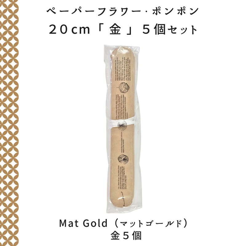 - Paper Flower Paper Pom Poms 7.9 inches (20 cm), Gold (Matte Gold), Set of 5