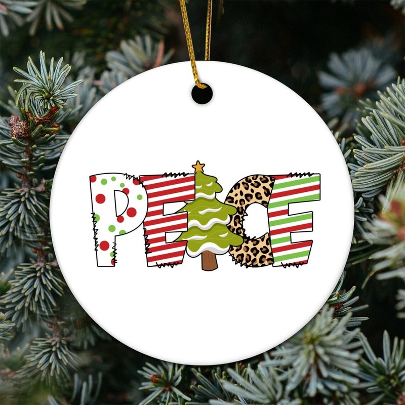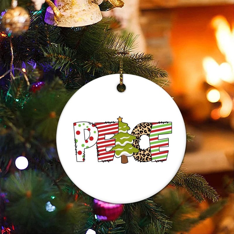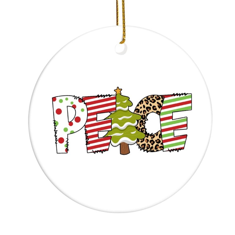 Peace Flat Circle Ceramic Ornaments for Christmas Tree Hanging Decoration Novelty Christmas Pendant Bauble Keepsake Holiday Souvenir New Year Xmas Gifts for Kids