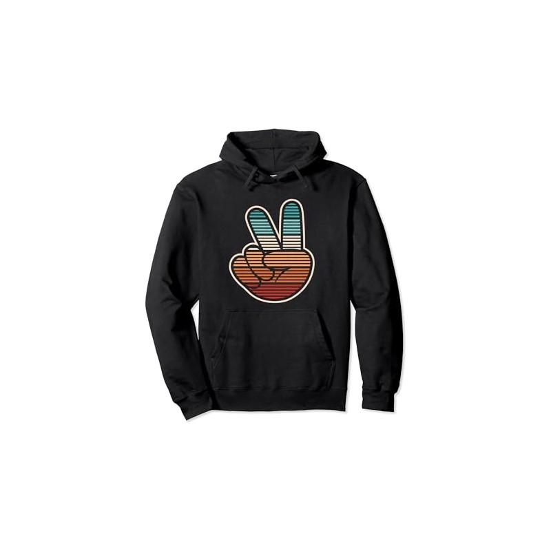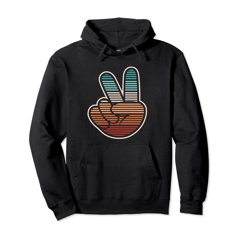 Peace Hand Sign Hippie Groovy 60s 70s Party Outfit Retro Pullover Hoodie