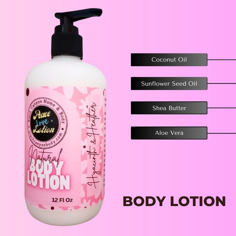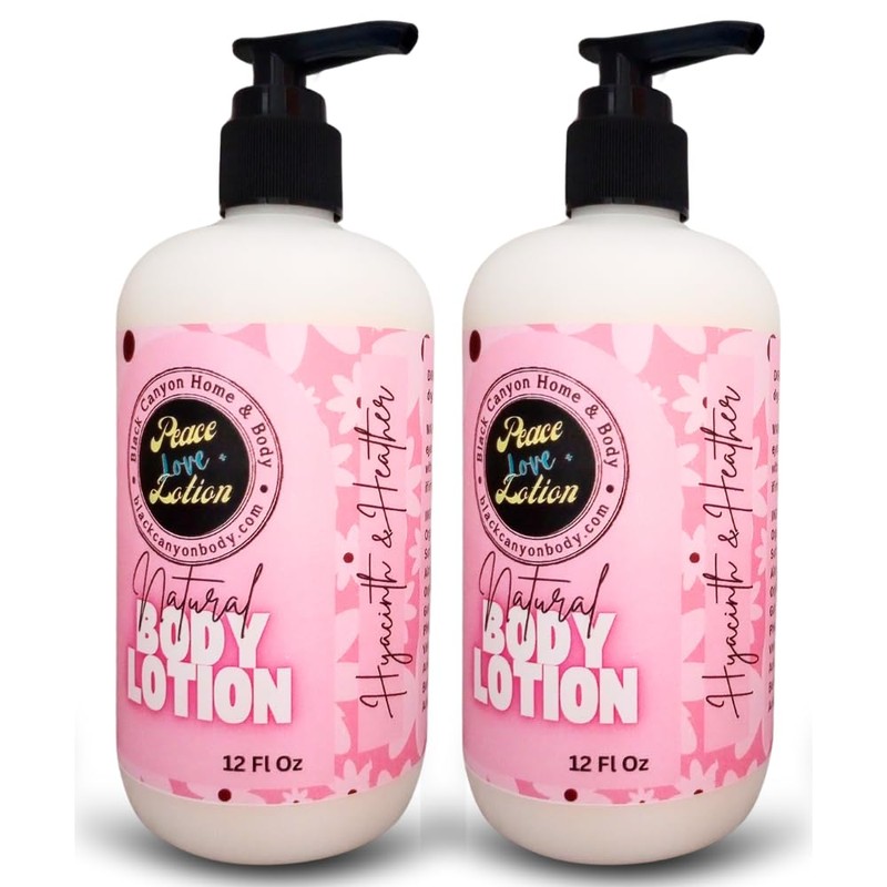 Peace Love + Lotion Hyacinth & Heather Scented Natural Body Lotion, 12 Oz (2 Pack)
