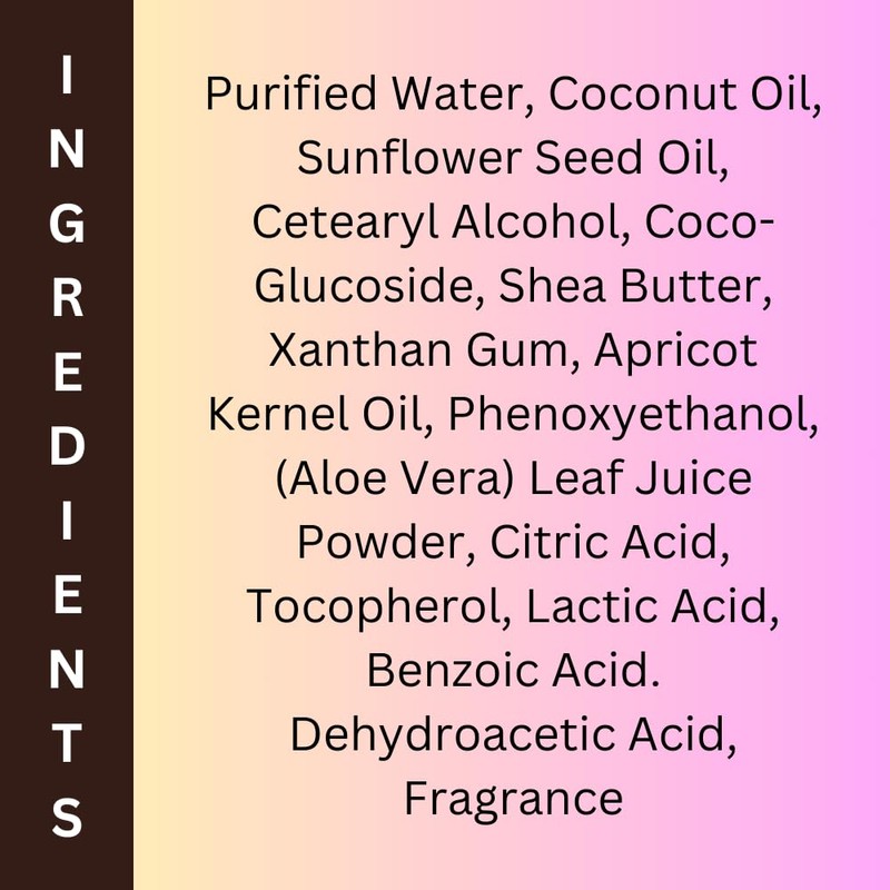 - Contains Coconut, Apricot Kernel, Sunflower Oils and Shea Nut butter and Enriched with moisturizing Aloe Vera