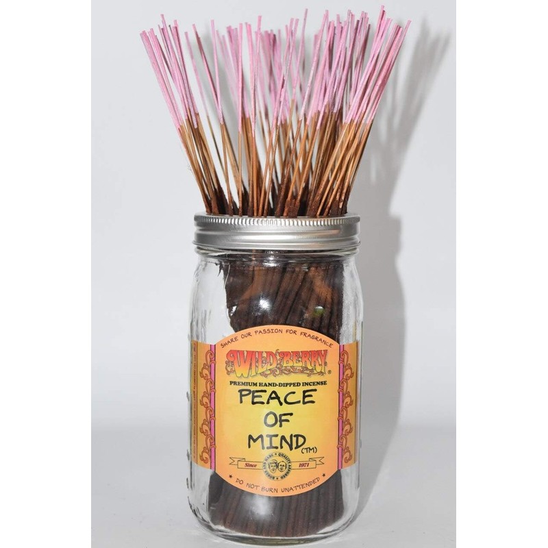 - Peace of Mind Wildberry Incense Sticks- 12 Sticks- Incense Sticks A serene floral blend with notes of juicy peach, black currant, lilac, spicy hyacinth and warm vanilla bean. Base Color: Pink Paint Length: Medium Fragrance Family: Fruits, Florals and Greens