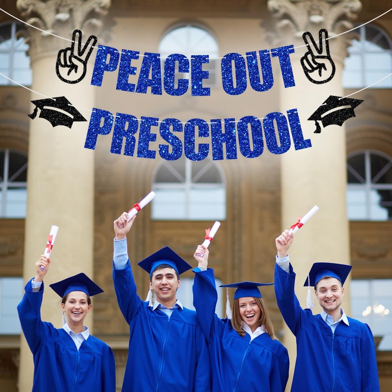 - [ PAKET INCLUDE ]: 1 pcs color glitter of "peace out preschool" banner, shiny color and beautiful design can decorate your party well.