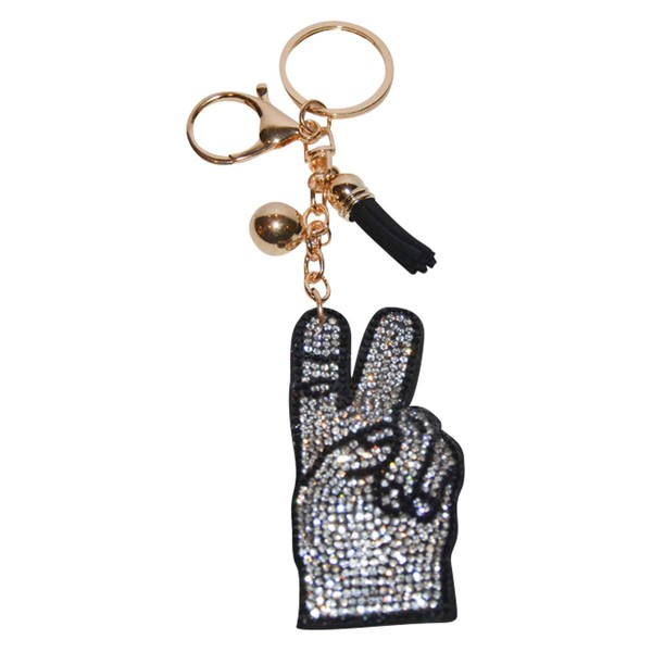 Peace Sign Keychain, Bling Backpack Key Chain, Rhinestone Peace on Earth Bag Charms, Keyfob Keyring