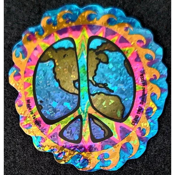 PEACE STICKER VINTAGE PRISM "NORTH AMERICA SO. AMERICA" 2 3/4 X 3" SHINEY THICK