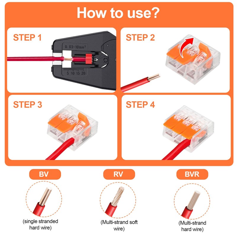 • Installation facility: it suffit d'ouvrir le levier à 90°, d'insérer le câble et de refermer le levier. Pas besoin d'électricien, vous pouvez l'utiliser vous-même et économiser du temps et des efforts.