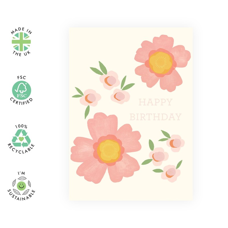 Peach Colour Birthday Card Flower - 'HBD Peach Pastel Floral' - Gifts for Her, Women, Colleagues, Coworker, Sister - Beautiful - Comes with Fun Stickers