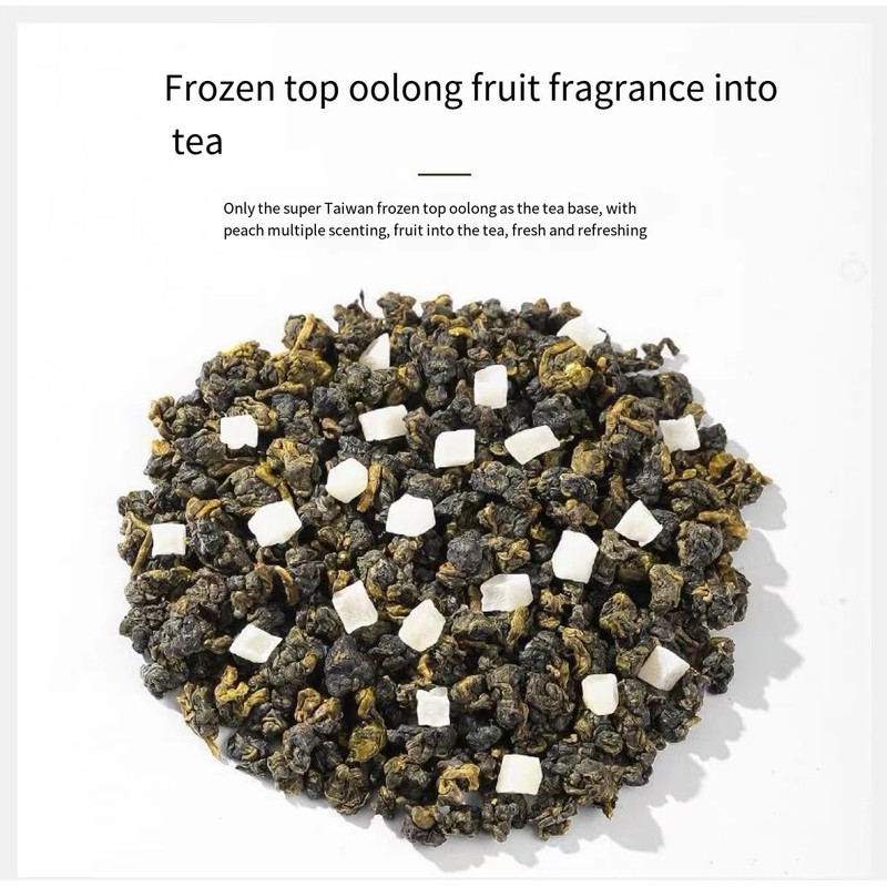 - Peach Oolong Tea is made by blending peaches, diced apples and fine oolongs,Pleasant fragrance,Fresh taste, can be brewed multiple times,It smells peachy and tastes mostly oolong tea.