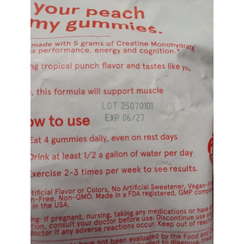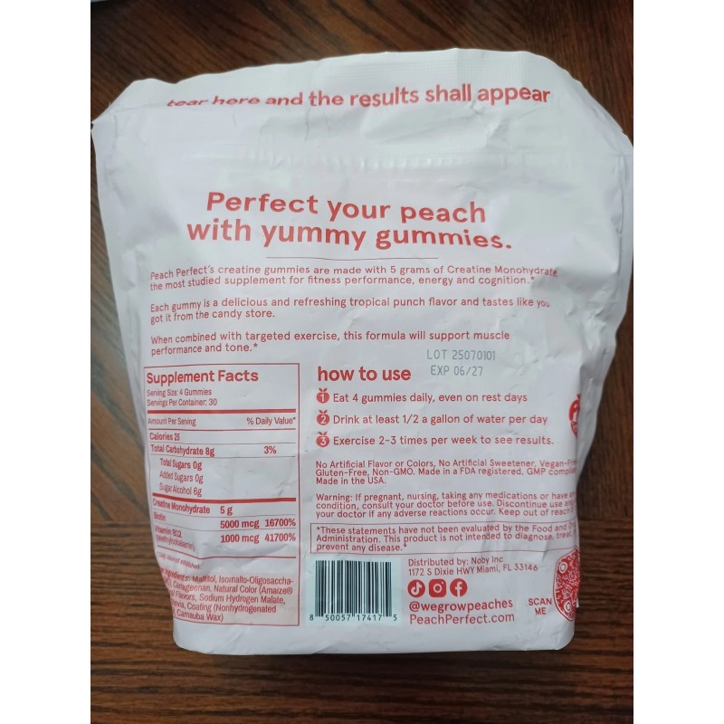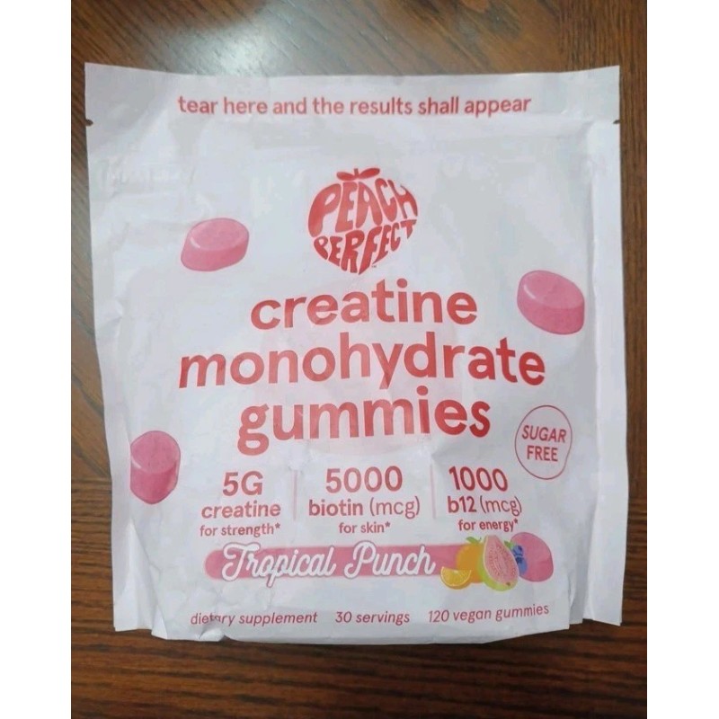 Peach Perfect Creatine Monohydrate Gummies Tropical Punch 5g Creatine 120ct 6/27