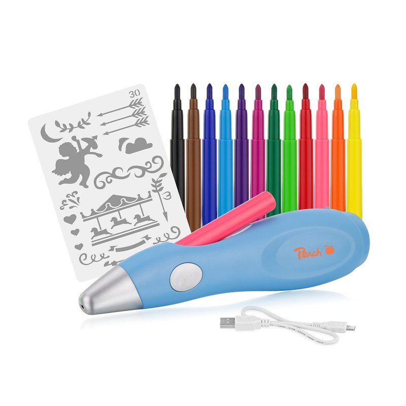 Peach PO150 Electric Airbrush Pen - 12 Colours - Includes More Than 70 Templates - Blue