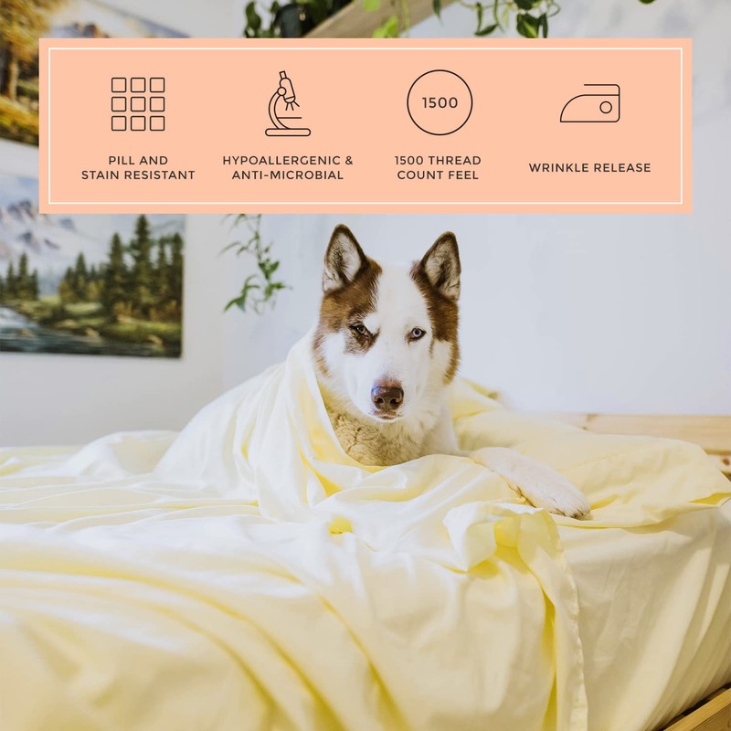 PeachSkinSheets Buttercream Yellow Sheet Set - 1500tc Level of Softness - Extra Soft Cooling Sheets for Hot Sleepers and Night Sweats - California King Size