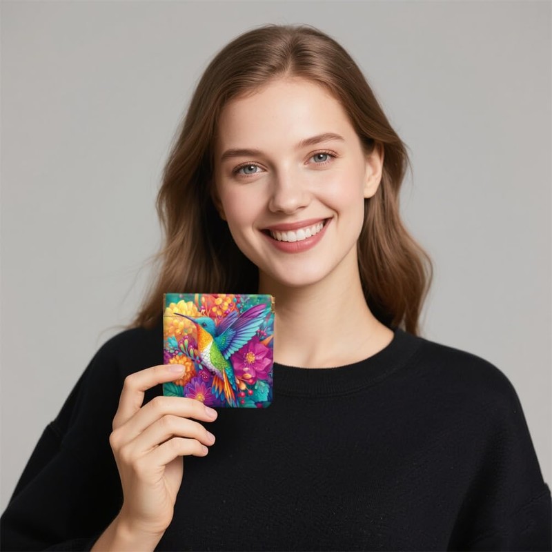 Peacoblue 4Pcs Small Leather Squeeze Coin Purse for Women-Hummingbird and Flower Pattern Waterproof & Durable Change Pouch Mini Money Wallet,Best Gift for Adult Girls