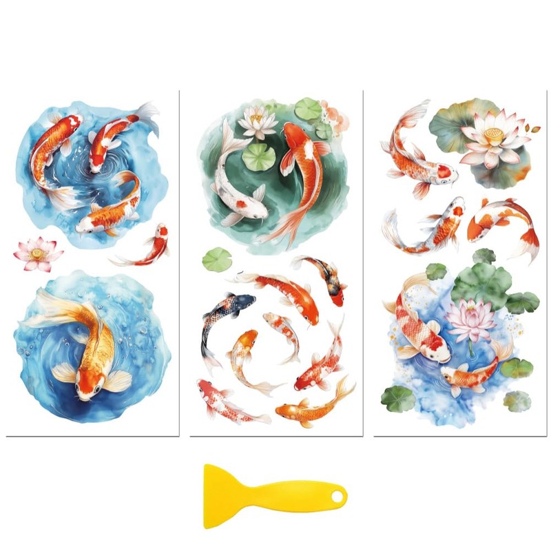 - 🪷Weit verbreitet: 3 Stück Koi mit Lotusblatt und Blumen n zum Aufreiben können auf Möbeln, Kommoden, Glas, Porzellan, Holz, Badezimmern verwendet werden und Möbeln und anderen Gegenständen einen neuen Stil verleihen
