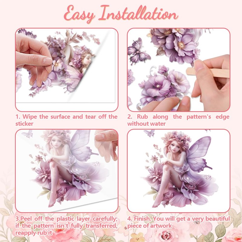 - Widely used: 3 beautiful transfer stickers with fairies and flowers can be used on furniture, dressers, glass, porcelain, wood and bathrooms, adding a new style to furniture and home