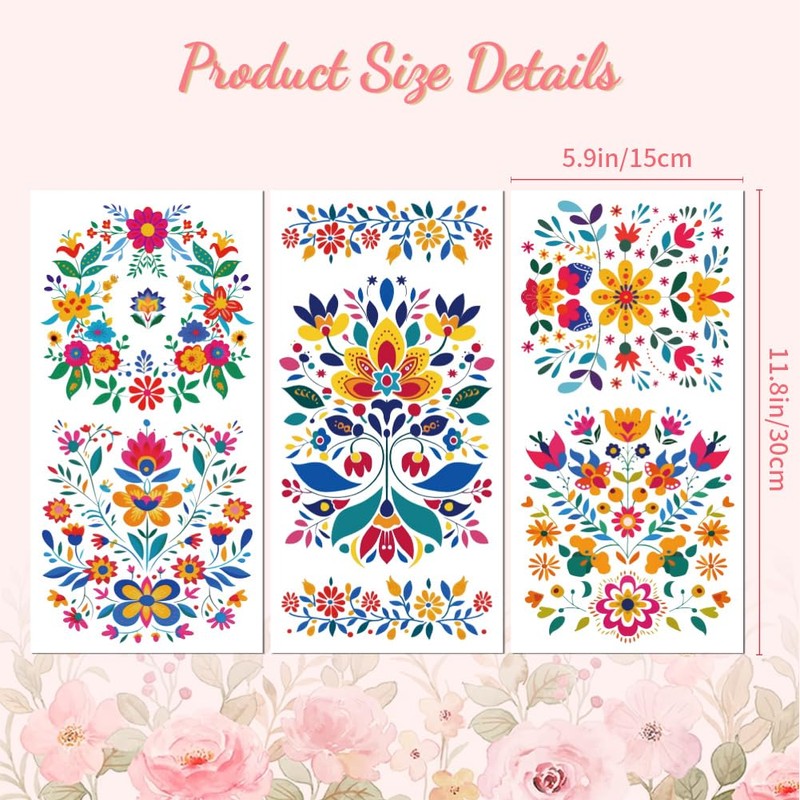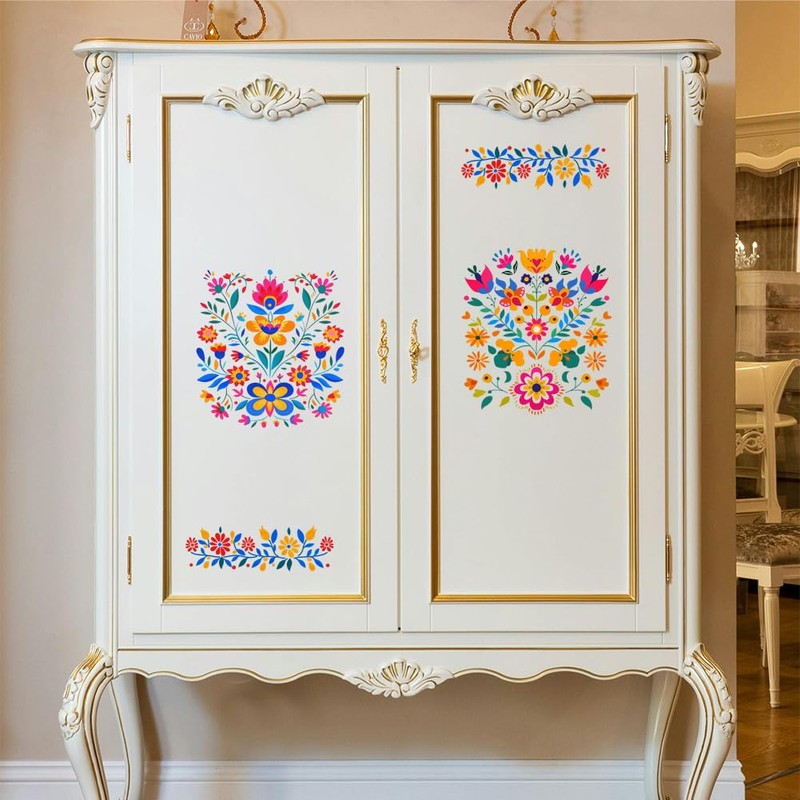 - 🌺Widely Used: 3Pcs mexican folk art flowers rub on transfer stickers can be used on furniture, wall, dresser, glass, porcelain, wood, bathroom — giving furniture and other items a new style for Halloween parties or Day of the Dead decorations