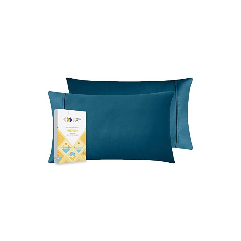 Peacock Blue Pillow Case Set - Natural Cotton 400 Thread Count, Standard Size 2 Piece Pillow Cover Set, Lightweight Sateen Weave Pillow Shams